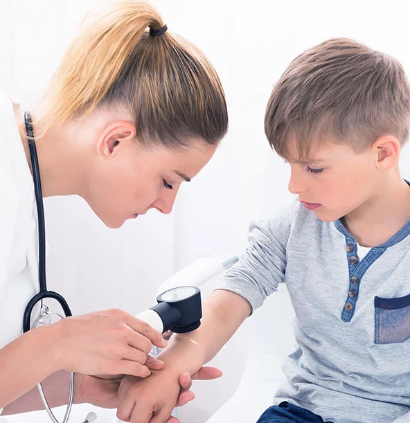 Diagnóstico y tratamiento de enfermedades dermatológicas en niños con enfoque clínico y preventivo. Atención profesional para dermatitis, alergias, infecciones cutáneas, hemangiomas y alteraciones del cabello y uñas, priorizando la seguridad del paciente pediátrico y la orientación a los padres.